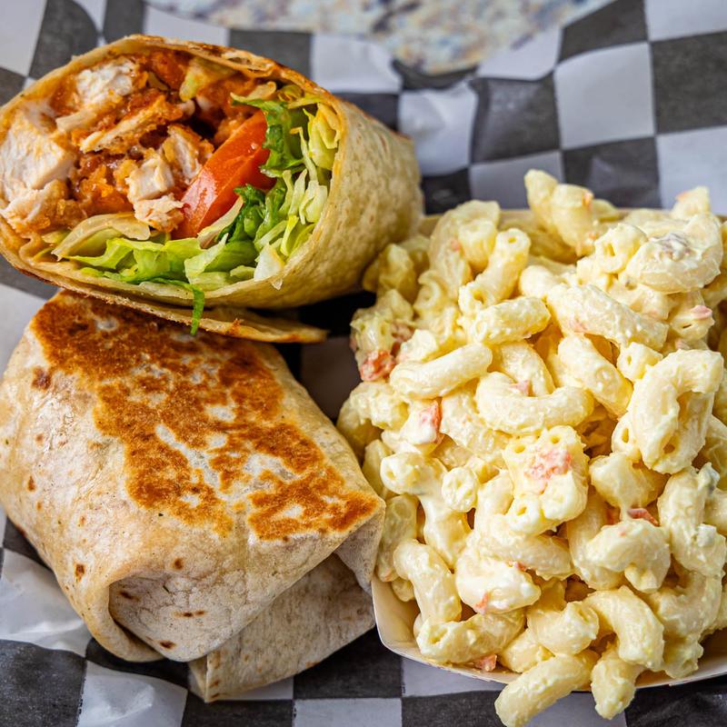 Includes two Crispy Chicken Tenders, lettuce, tomato, blue cheese, mild buffalo sauce & choice of side.